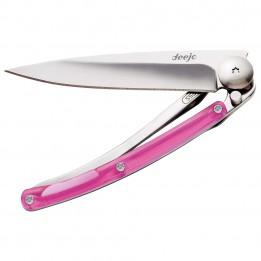 Super leichtes Taschenmesser mit transparentem Griff aus Polycarbonat - Farbe: Grau/Rosa/Weiß; Gr: 9 cm; Material: Edelstahl (420), hochglanzpoliert; Weitere Top-Angebote von Deejo bei www.bergfreunde.de online bestellen!